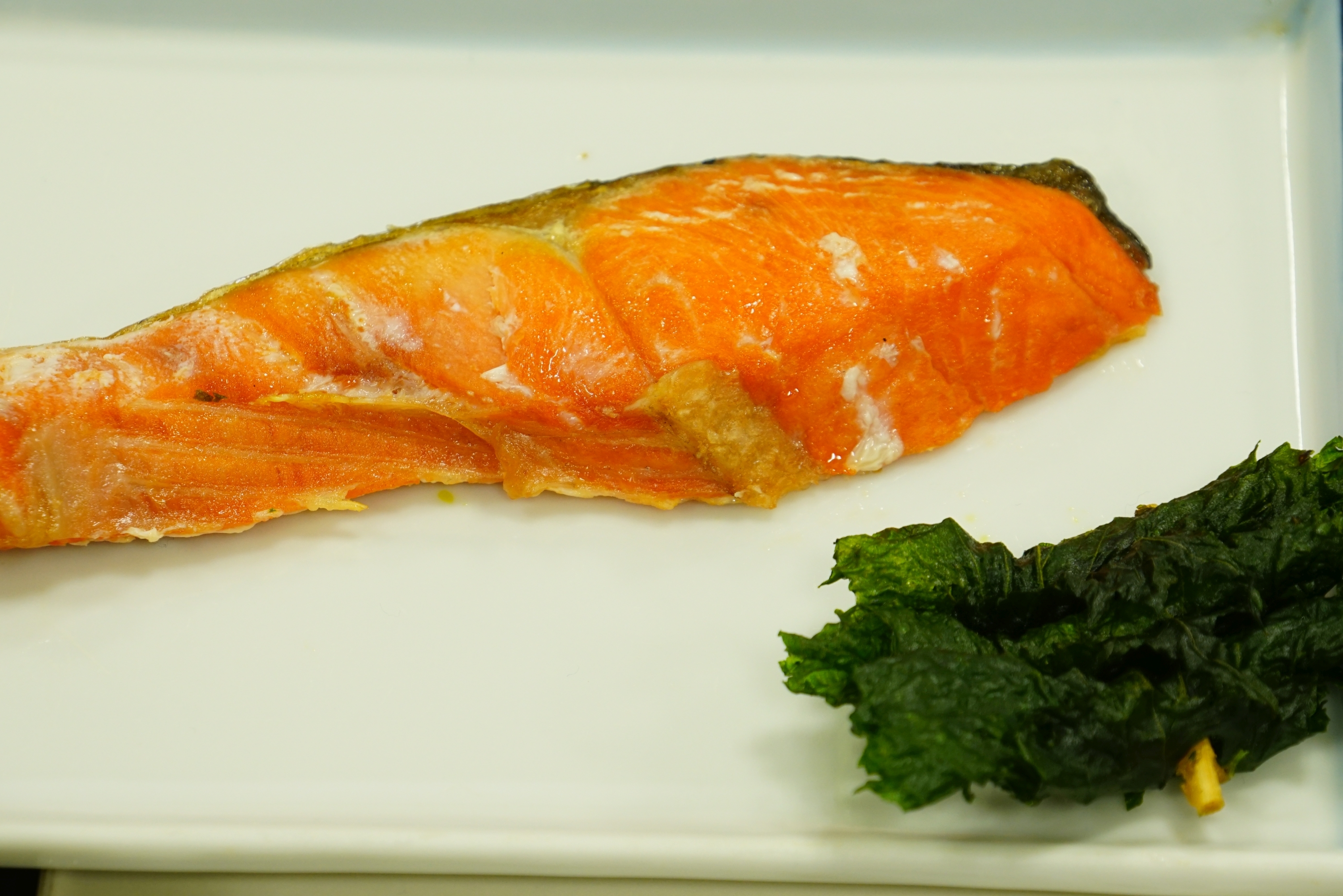 ・ 塩紅鮭焼 しそ巻添え