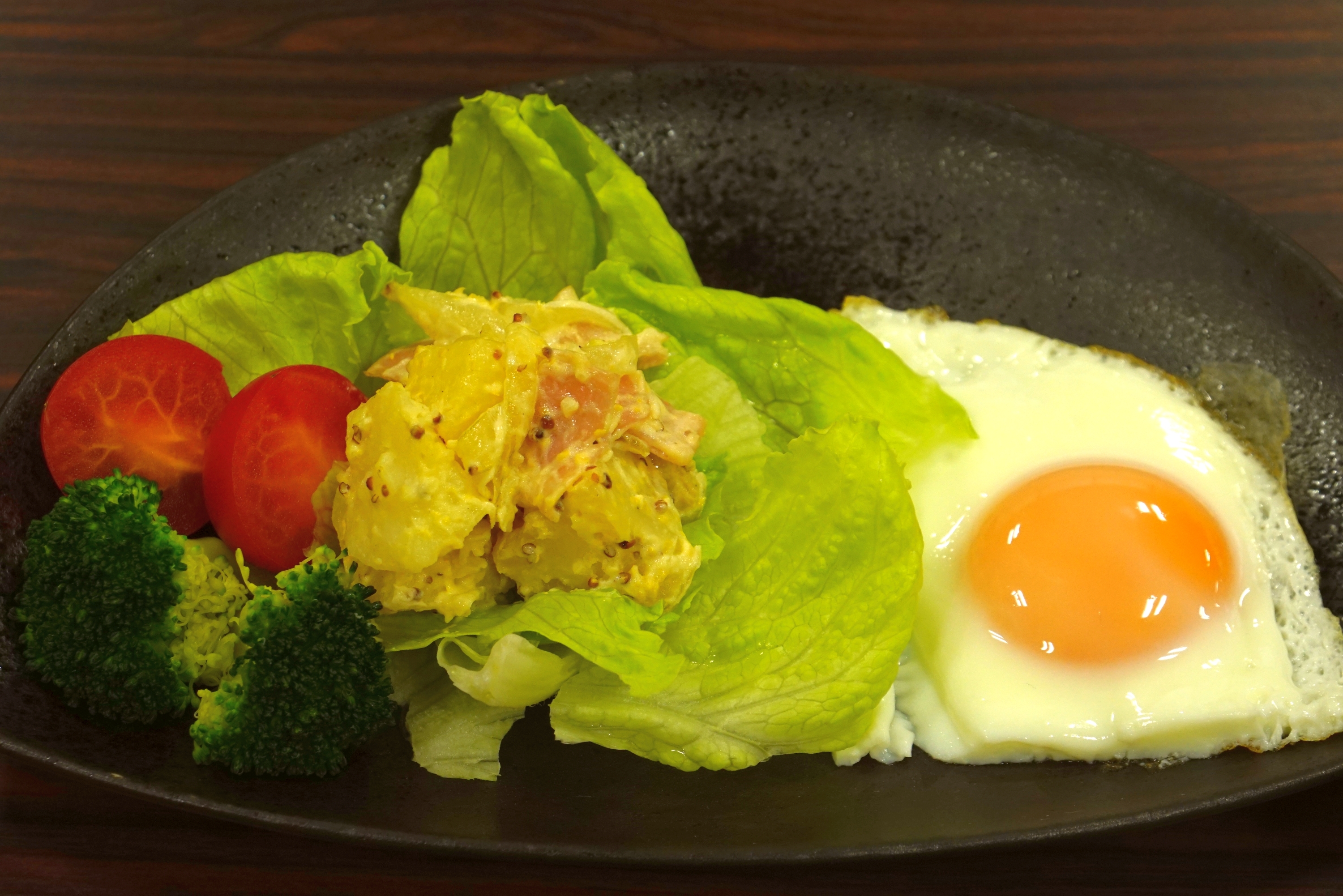 ・ 目玉焼き サラダ添え